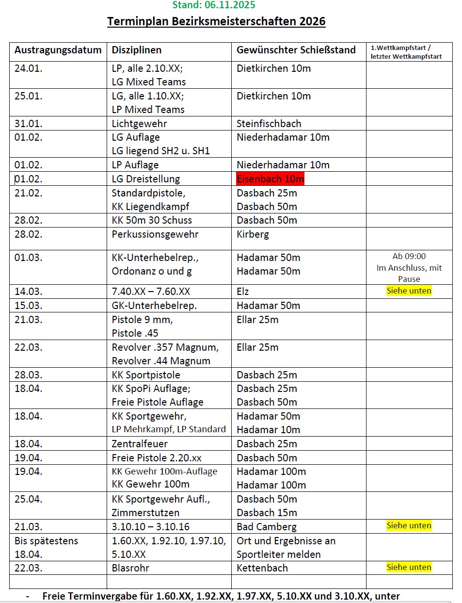 Terminübersicht über die anstehenden Bezirksmeisterschaften 2026