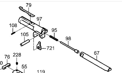 Ein Schütze wurde am vergangenem Samstag durch das nach hinten herausfliegende Schlagstück am Auge schwerst verletzt. Vermutlich gab es einen Hülsenausbläser durch das Zündhütchen, von dort in den Schlagbolzenkanal, worauf das Metallplättchen Nr. 721 nachgab und die Energie das Schlagstück Nr. 67 aus dem Verschluss trieb. Das Zündhütchen hat ein deutliches Loch. Der Treffer auf der Scheibe lag deutlich tiefer.